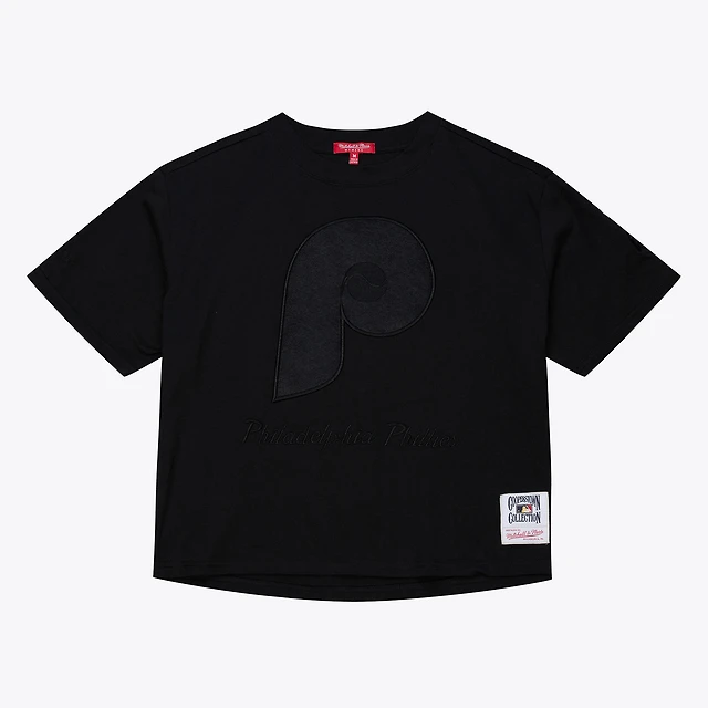 Women's Mitchell & Ness Black Philadelphia Phillies Cooperstown Collection Phantom Cropped T-Shirt