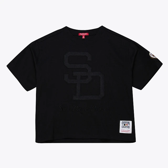 Women's Mitchell & Ness Black San Diego Padres Cooperstown Collection Phantom Cropped T-Shirt