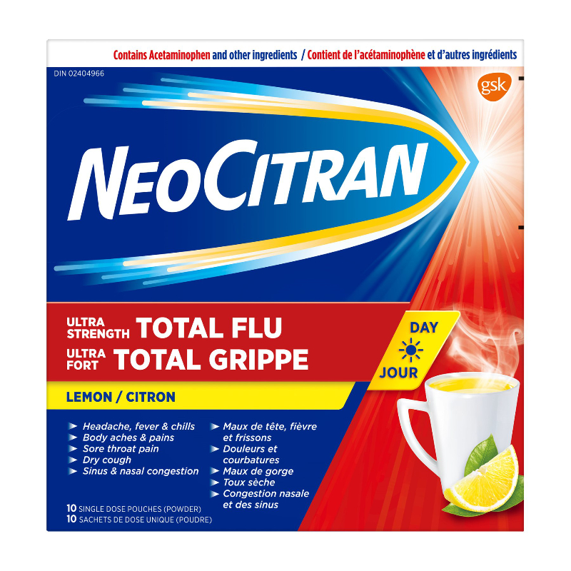 NeoCitran Total Flu Ultra Strength Night Powder - Lemon - 10's