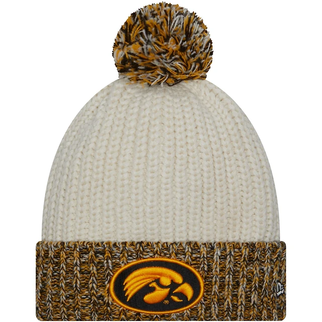Women's New Era Cream Iowa Hawkeyes Fresh Cuffed Knit Hat with Pom