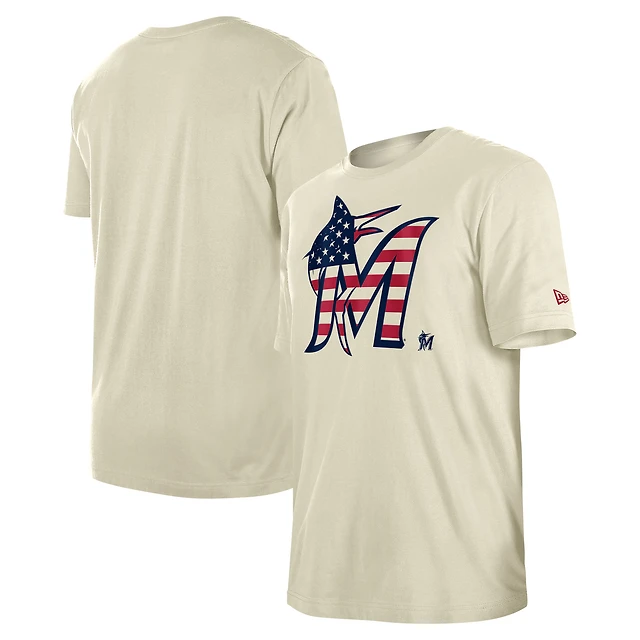 Men's New Era Cream Miami Marlins Americana Flag Fill T-Shirt