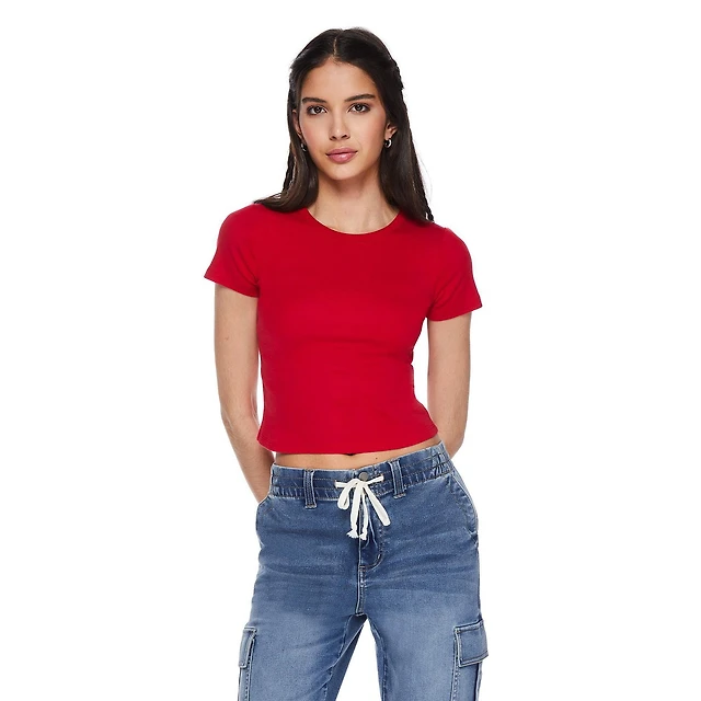 No Boundaries Women's Short Sleeve Baby Tee