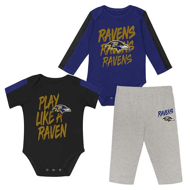 Infant Outerstuff Purple/Black Baltimore Ravens Double Down Bodysuits and Pants 3-Piece Set