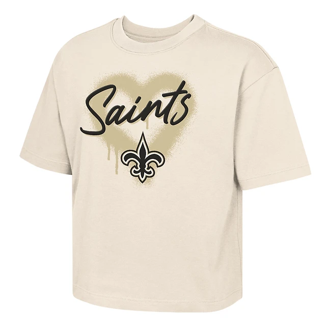Girl's Youth Outerstuff Cream New Orleans Saints Spray Heart Boxy T-Shirt