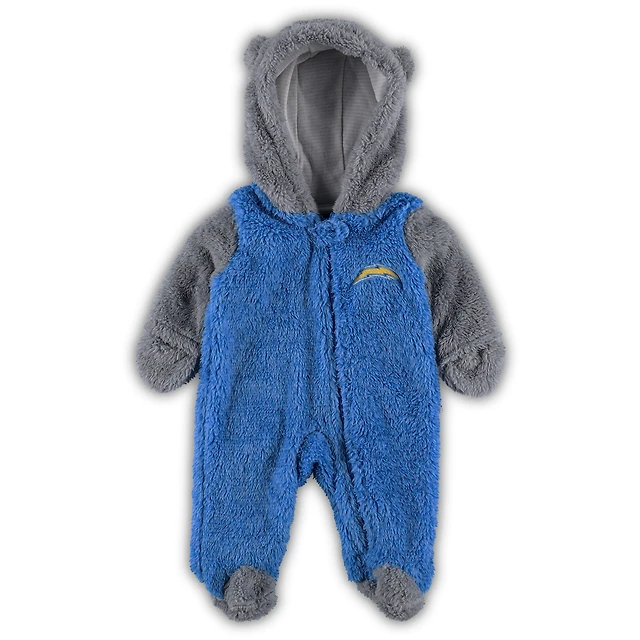 Newborn & Infant Powder Blue/Gray Los Angeles Chargers Game Nap Teddy Fleece Bunting Full-Zip Sleeper
