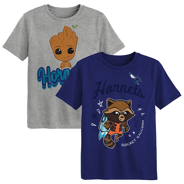 Toddler Heather Gray Charlotte Hornets Two-Piece Guardians Of The Galaxy T-Shirt Set