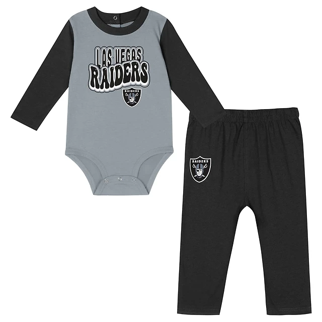 Infant Silver/Black Las Vegas Raiders Double Up Long Sleeve Bodysuit Pant Set