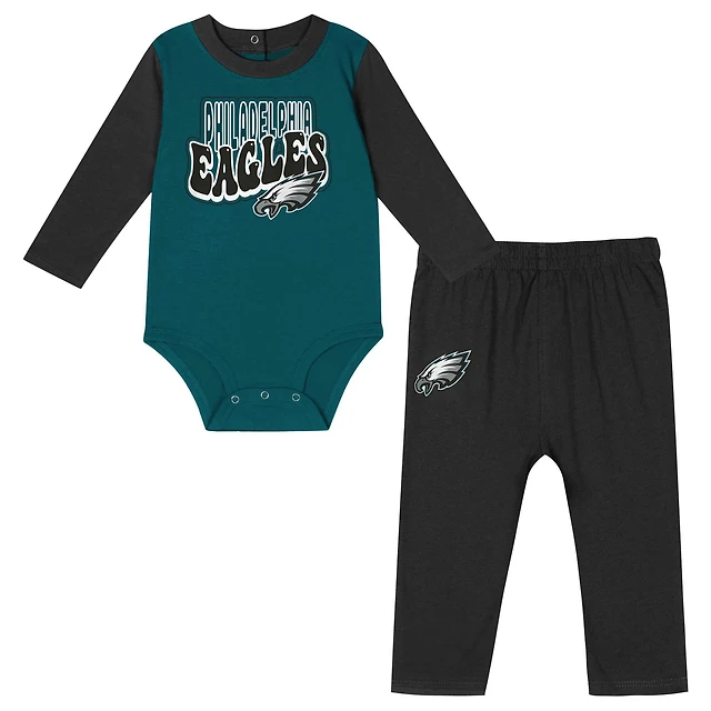Infant Midnight Green/Black Philadelphia Eagles Double Up Long Sleeve Bodysuit Pant Set