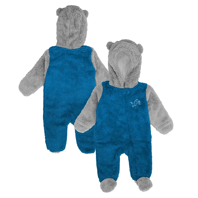 Newborn & Infant Blue Detroit Lions Game Nap Teddy Fleece Bunting Full-Zip Sleeper