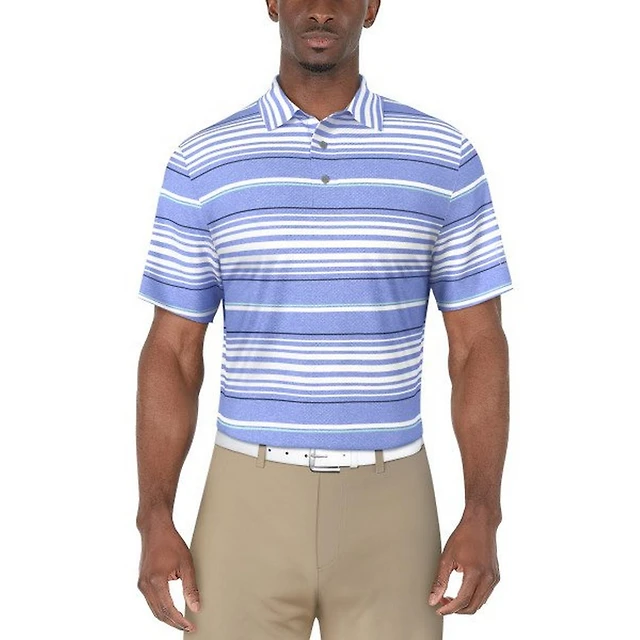 Men's All Over Stripe Printed Short Sleeve Polo