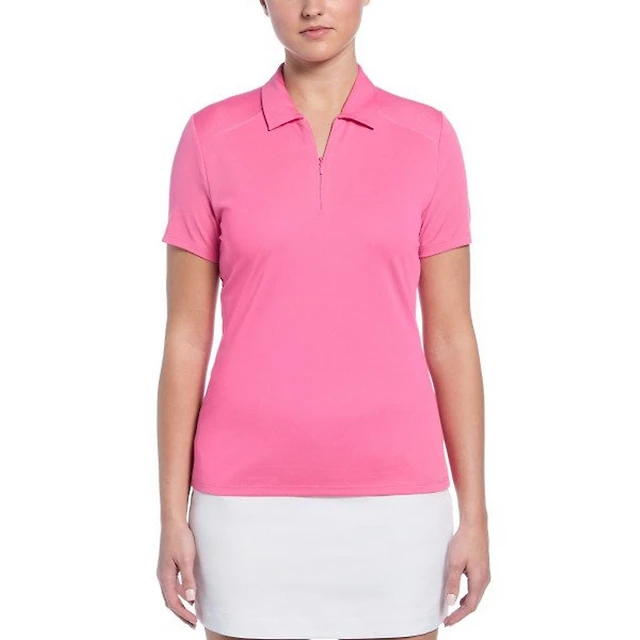 Women's Floral Zip Mock Neck Short Sleeve Top