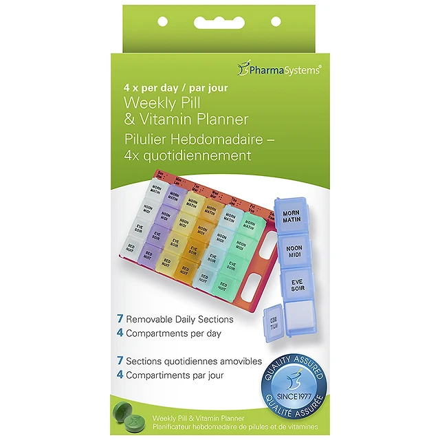 PharmaSystems Weekly Pill Planner with 4 times daily removable sections