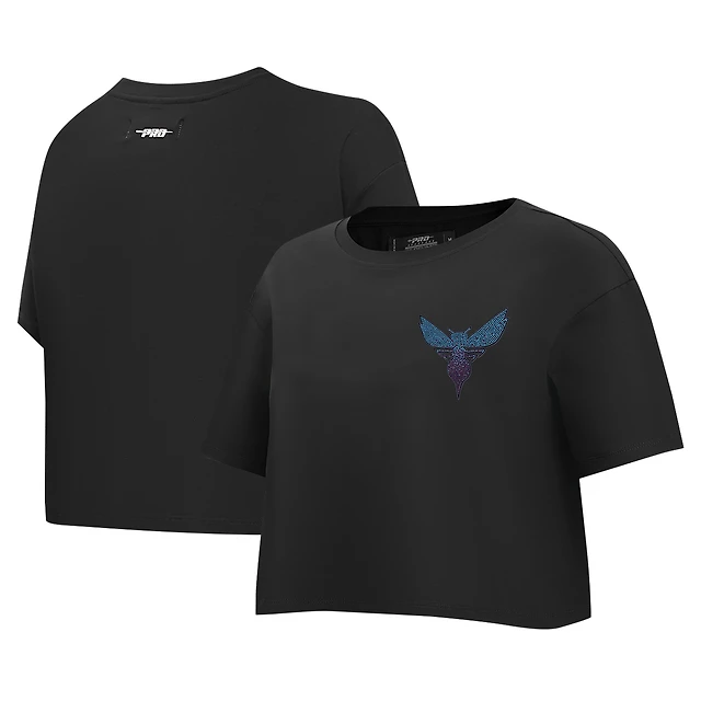 Women's Pro Standard Black Charlotte Hornets Jewels Boxy Cropped T-Shirt