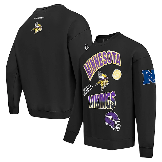 Men's Pro Standard Black Minnesota Vikings Turn It Up Drop Shoulder Pullover Sweatshirt