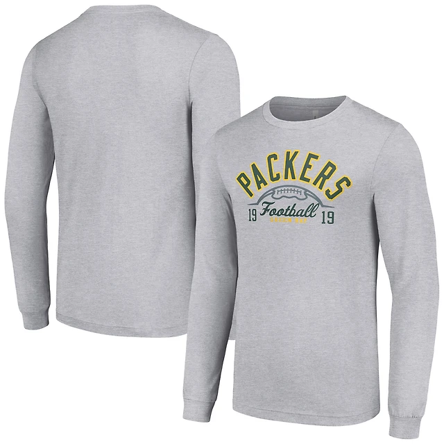 Men's Starter Heather Gray Green Bay Packers Half Ball Team Long Sleeve T-Shirt