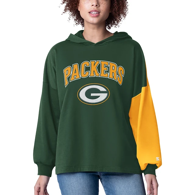 Women's Starter Green Bay Packers Power Move Long Sleeve Pullover Hoodie