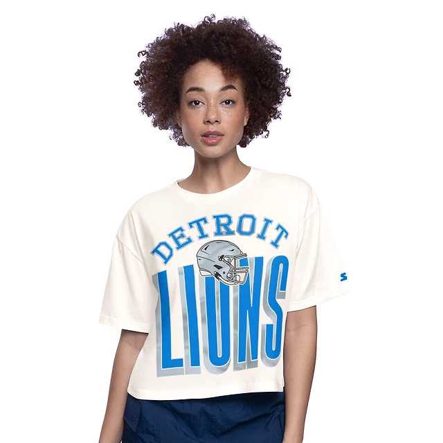 Women's Starter Cream Detroit Lions Throwback Play the Ball Boxy Cropped T-Shirt