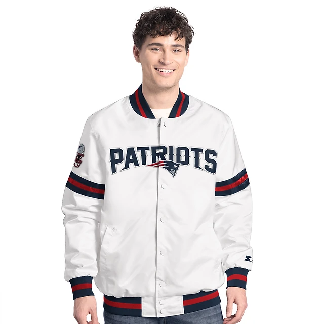 Men's Starter White New England Patriots Scout Full-Snap Varsity Jacket