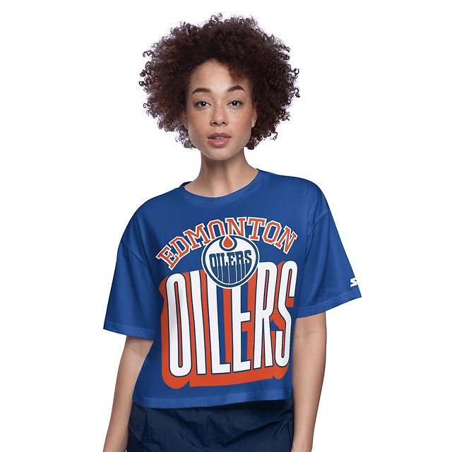 Women's Starter Royal Edmonton Oilers Play the Ball Cropped T-Shirt