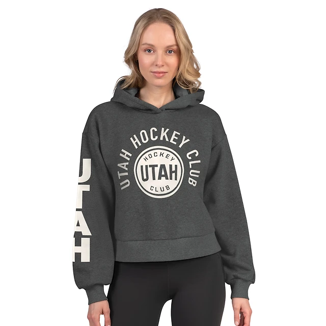 Women's Starter Heather Charcoal Utah Mammoth Star Player Cropped Fleece Hoodie