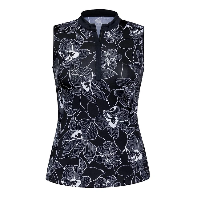 Women's Destiny Printed Zip Up Mock Neck Sleeveless Top