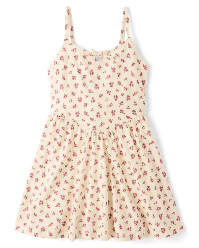 Girls Floral Textured Bow Back Dress