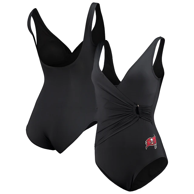 Women's Tommy Bahama Black Tampa Bay Buccaneers Pearl Clara Wrap One-Piece Swimsuit