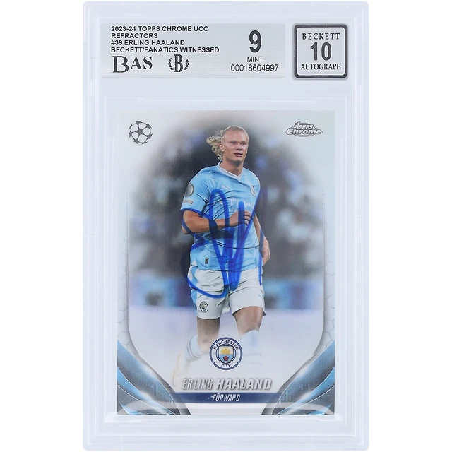 Erling Haaland Manchester City Autographed 2024-25 Topps Chrome UEFA Refractor #9 Beckett Fanatics Witnessed Authenticated Card