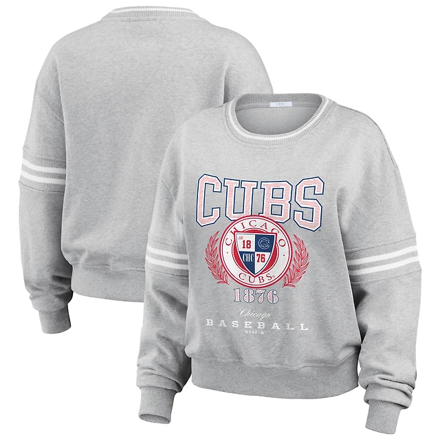 Women's WEAR by Erin Andrews Heather Gray Chicago Cubs Domestic Crest Pullover Sweatshirt