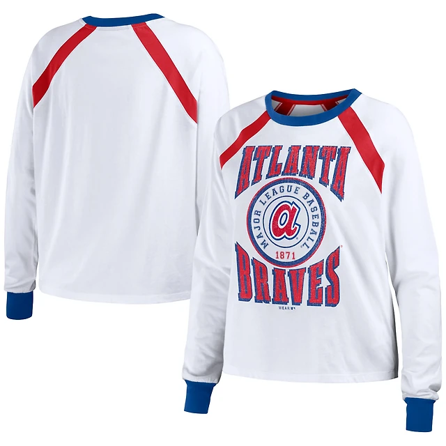 Women's WEAR by Erin Andrews White Atlanta Braves Raglan Long Sleeve T-Shirt