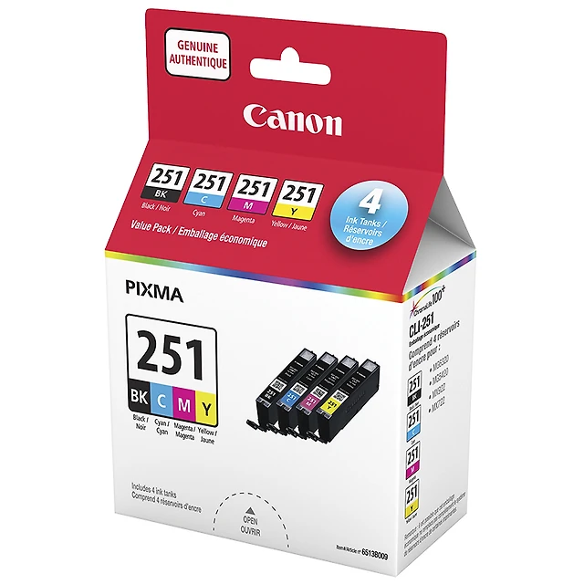 Canon CLI-251 CMYK Value Pack Ink Cartridges - Black/Cyan/Magenta/Yellow - 6513B009