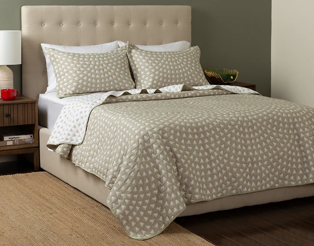 Forest Frost Cotton Blend Coverlet Set, Scenic, Green,