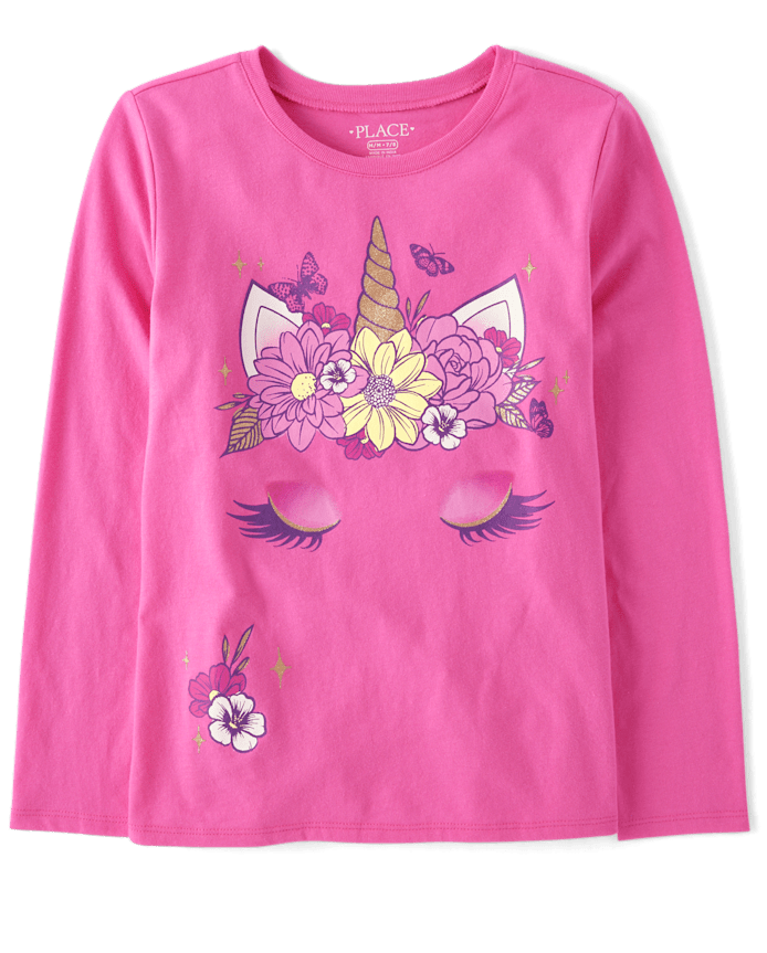 Girls Unicorn Flowers Graphic Tee