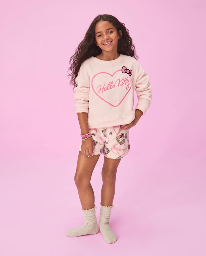 Girls Hello Kitty® Embroidered Heart Fleece Pajamas