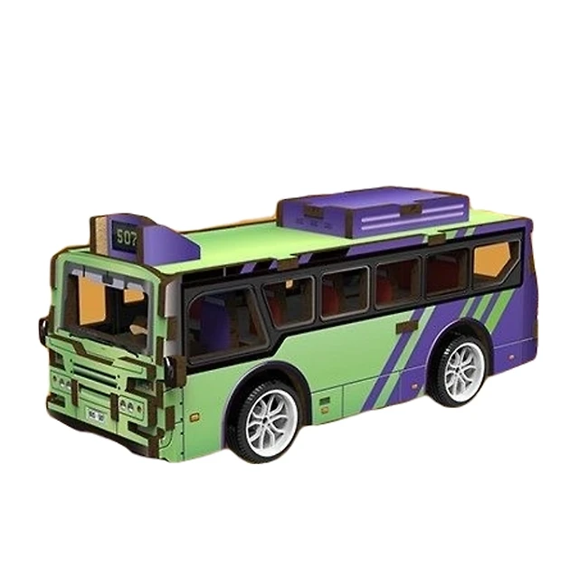 3D Wood Puzzle Bus with Pull Back 22 Pieces