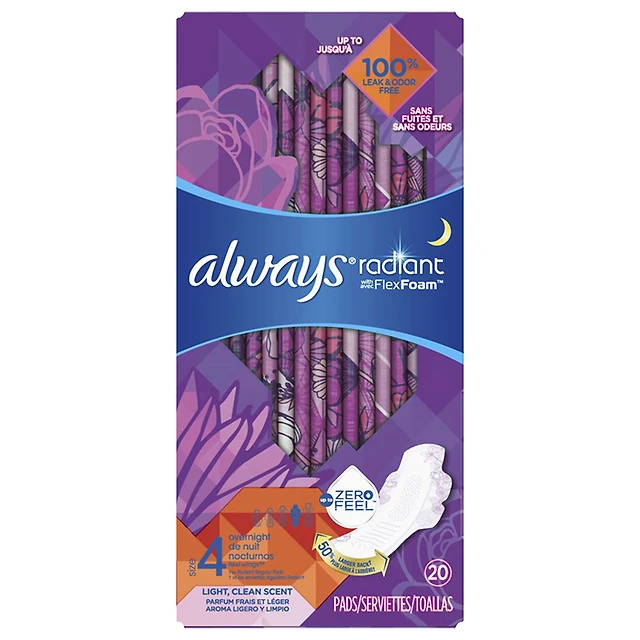 Always Radiant Size 5 Extra Heavy Overnight Pads - 18's