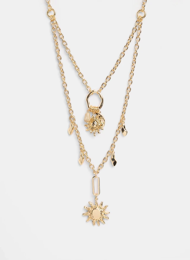 Long Necklace with Double-Stone Pendant