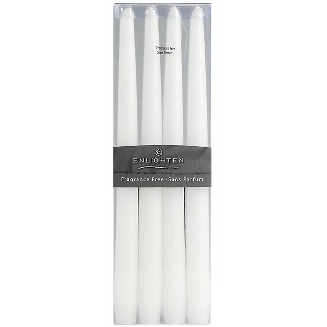 Enlighten Linen Taper Unscented Candles - White - 4 pack