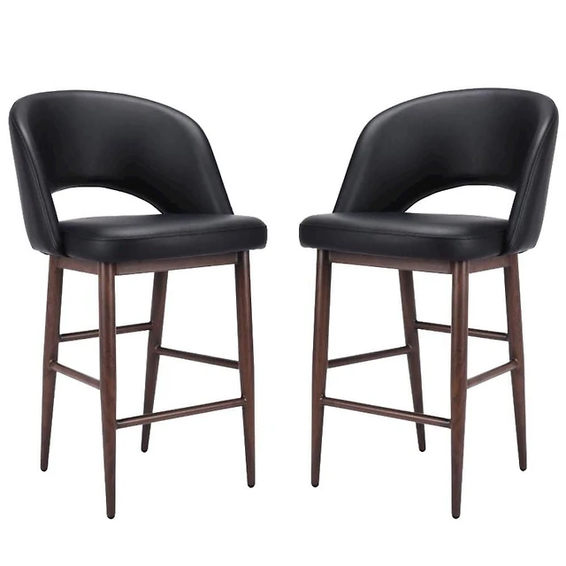 Nicer Furniture Black Rounded Faux Leather Bar Stool