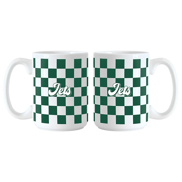 New York Jets 2-Pack 15oz. Checkered Wordmark Mug Set