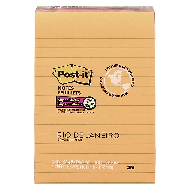 3M Post-it Notes - Rio De Janeiro - 4 in. x 6 in. - 3 x 90 sheets