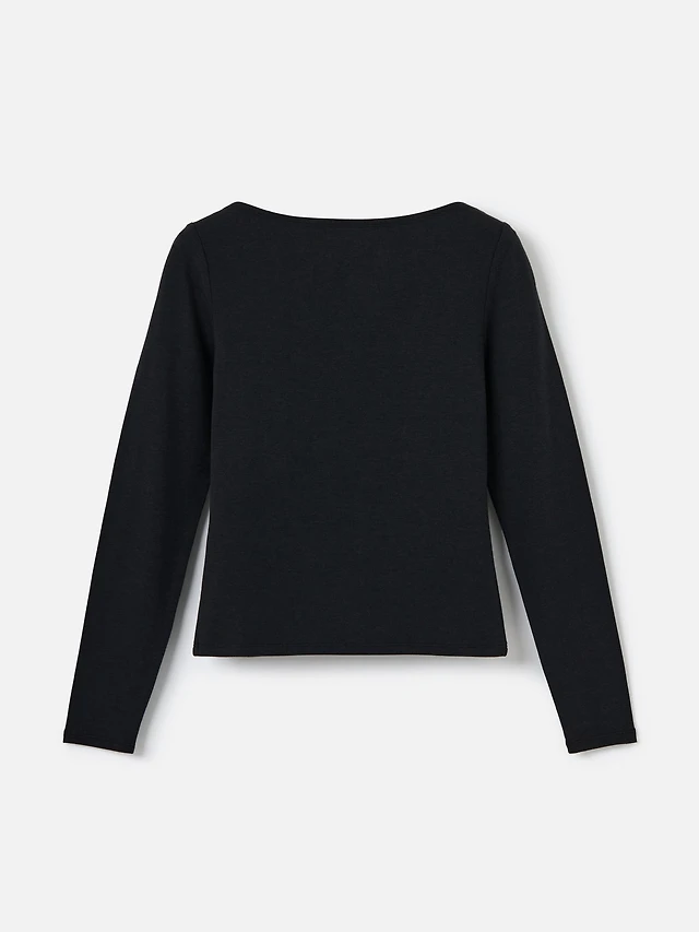 Long-Puffy-Sleeve Crew-Neck Mix-Media Sweatshirt