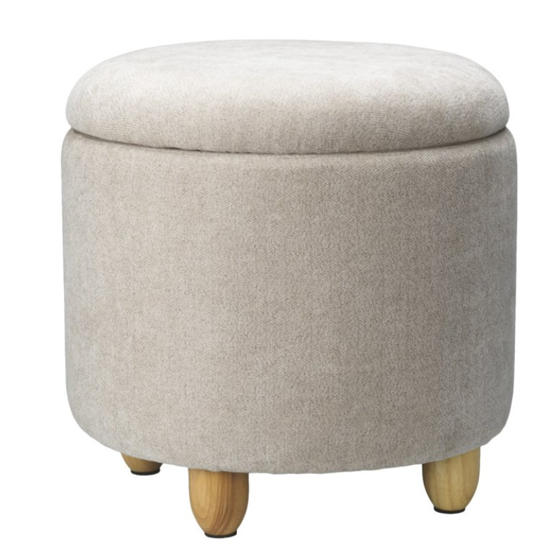 !Nspire Round Fabric Storage Ottoman - Warm Grey