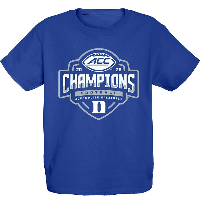 Youth Blue 84 Royal Duke Devils 2025 ACC Football Champions Locker Room T-Shirt