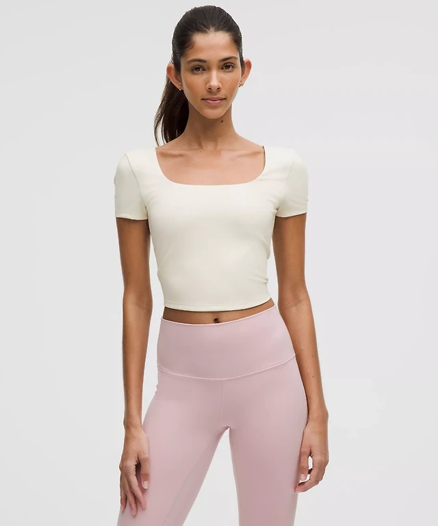 Striped Elbow-Sleeve Crew-Neck Fitted Tee