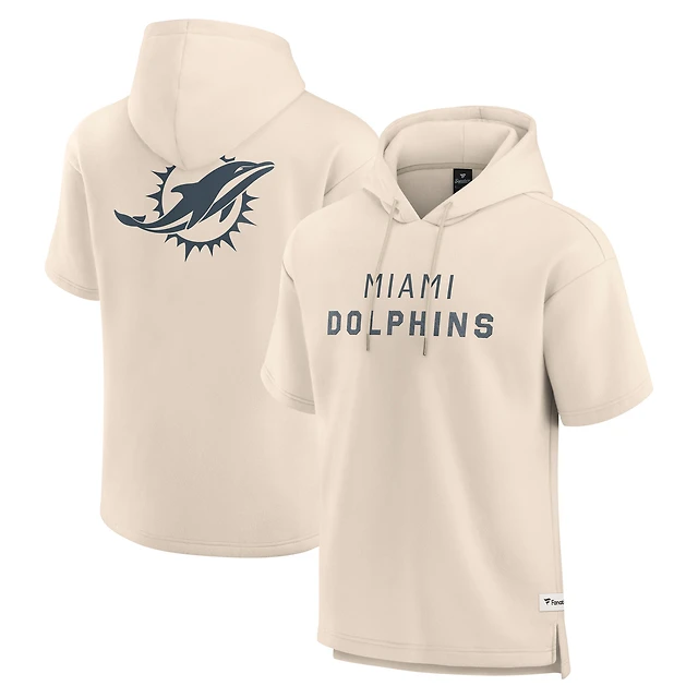 Men's Fanatics Cream Miami Dolphins Elements Future Ground Lettering Short Sleeve Pullover Hoodie