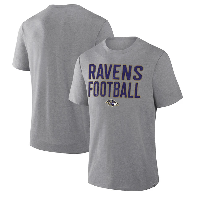 Men's Fanatics Heather Gray Baltimore Ravens First Down Tribute Tri-Blend T-Shirt