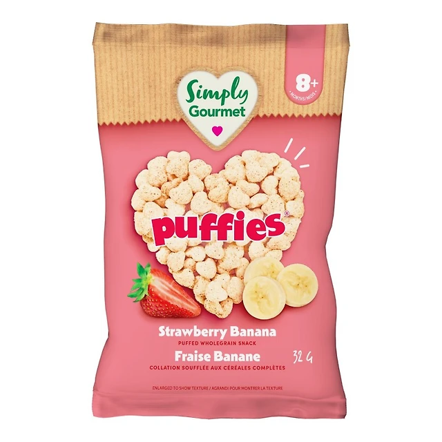 Simply Gourmet Puffies Puffed Wholegrain Snack - Strawberry Banana - 32g