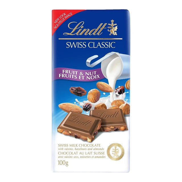 Lindt Swiss Classic Milk Chocolate Bar - Fruit & Nuts - 100g