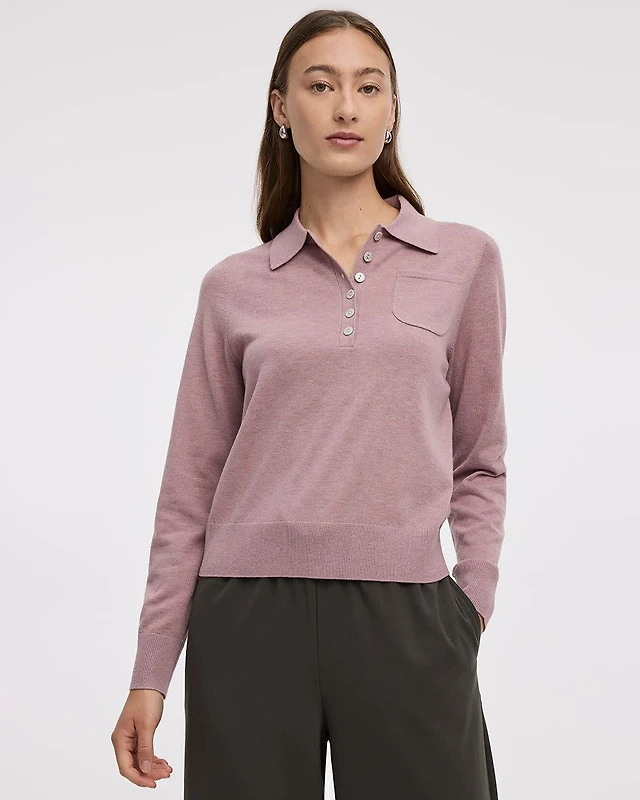 Short-Sleeve Textured Polo Sweater